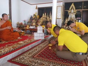 5. รายละเอียดกิจกรรม : พ.ต.อ.รวีโรจน์ ปัญญาสุวรรณกุล ผกก.สภ.สนม มอบหมายให้ชุดจิตอาสา สภ.สนม จำนวน 3 น. ว.4 กิจกรรมจิตอาสาเฉพาะกิจ กลุ่มโอกาส 4 สี 18 กลุ่ม ( กลุ่มที่ 14 พุทธศาสนิกชนผู้มีความเลื่อมใสศรัทธาต่อพระภิกษุสงฆ์ผู้ เข้าถวายการวิปัสสนากรรมฐาน และรับพระราชทานพัดยศ) พระครูปริยัติกาญจนโสภิต (พิทักษ์ กาญจนธโร ปธ.๓)