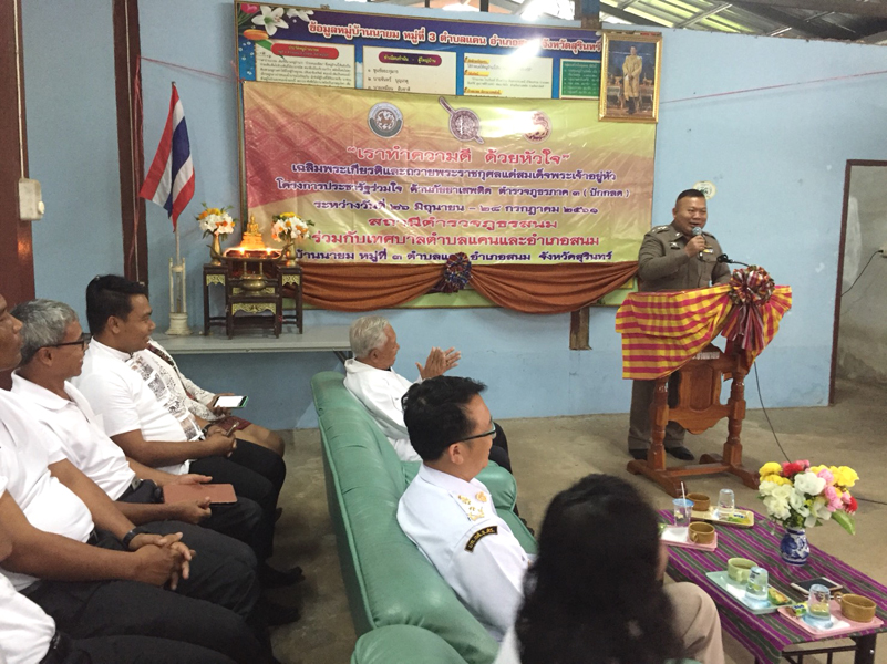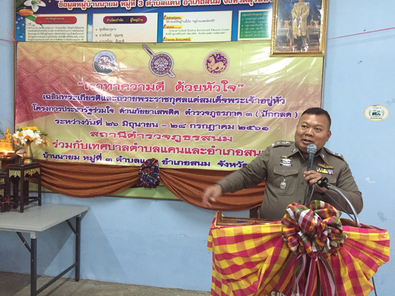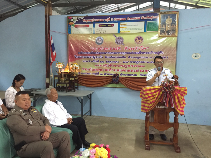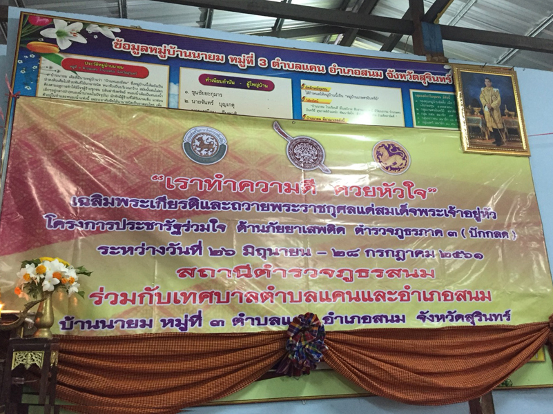 เมื่อวันที่ 26 มิถุนายน 2561 เวลา 14.00 น. พ.ต.อ. สนม. อุไรรักษ์ ผกก.สภ.สนม พร้อมด้วย หน.ส่วนราชการต่างๆ ทั้งภาครัฐและภาคเอกชน (อำเภอ/เทศบาลตำบลแคน) กำนัน , ผู้ใหญ่บ้าน , นักเรียน และข้าราชการตำรวจในสังกัด ได้ ร่วมพิธีเปิดโครงการประชารัฐร่วมใจ ต้านภัยยาเสพติด ตำรวจภูธร ภาค 3 (ปักกลดโครงการ 2) ณ บ้านนายม หมู่ 3 ต.แคน อ.สนม จว.สุรินทร์ โดยมีนายคณัสชนม์ ศรีเจริญ นายอำเภอสนมเป็นประธานพิธี.