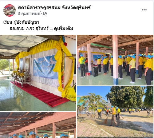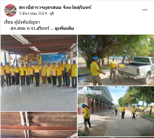 เรียน ผู้บังคับบัญชา สภ.สนม ภ.จว.สุรินทร์ ขอรายงานผลการปฏิบัติกิจกรรมจิตอาสา ดังนี้ 1. ประเภทกิจกรรม